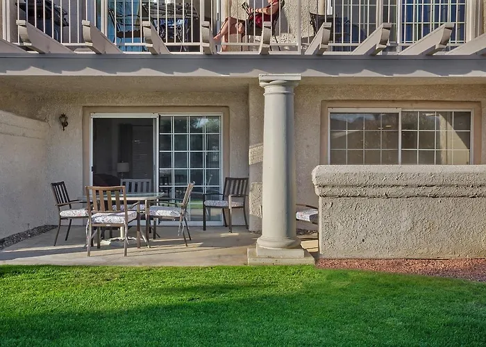È dotato di una cucina completamente attrezzata. Il ristorante Nina's Greek Cuisine & Pizzeria, che serve agli ospiti cucina greca, si trova a circa 500 metri. La fermata dell'autobus E Palm Cyn at Calle Rolph è relativamente vicino a Our Mesquite-Refreshed 1St Floor Nature Preserve & Mtn View Condo!, di 109 m². L'appartamento offre anche una jacuzzi e una piscina all'aperto per migliorare l'esperienza complessiva del soggiorno degli ospiti. Presso l’alloggio è possibile fare escursioni a piedi e tennis.